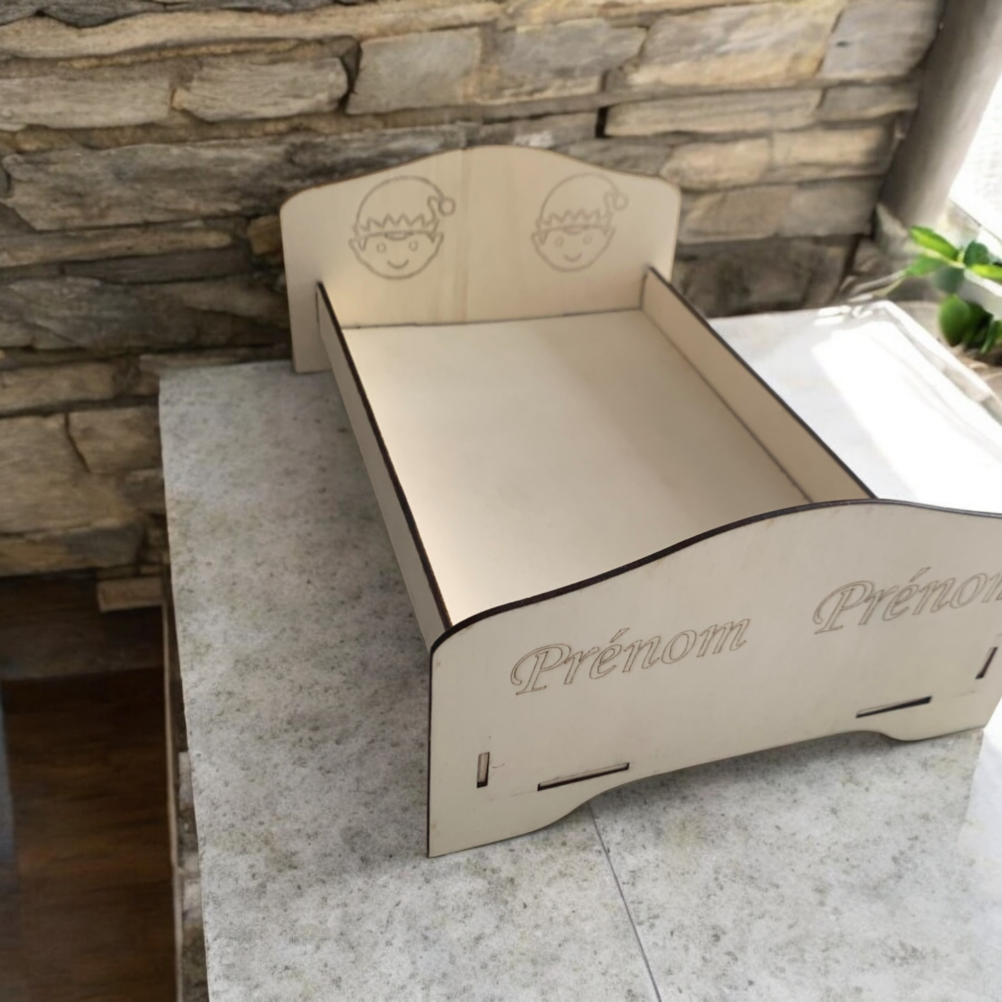 Ce lit deux places en bois clair est un objet de décoration de Noël adorable et original. Il est spécialement conçu pour accueillir deux lutins farceurs et ajouter une touche de magie à votre intérieur pendant les fêtes